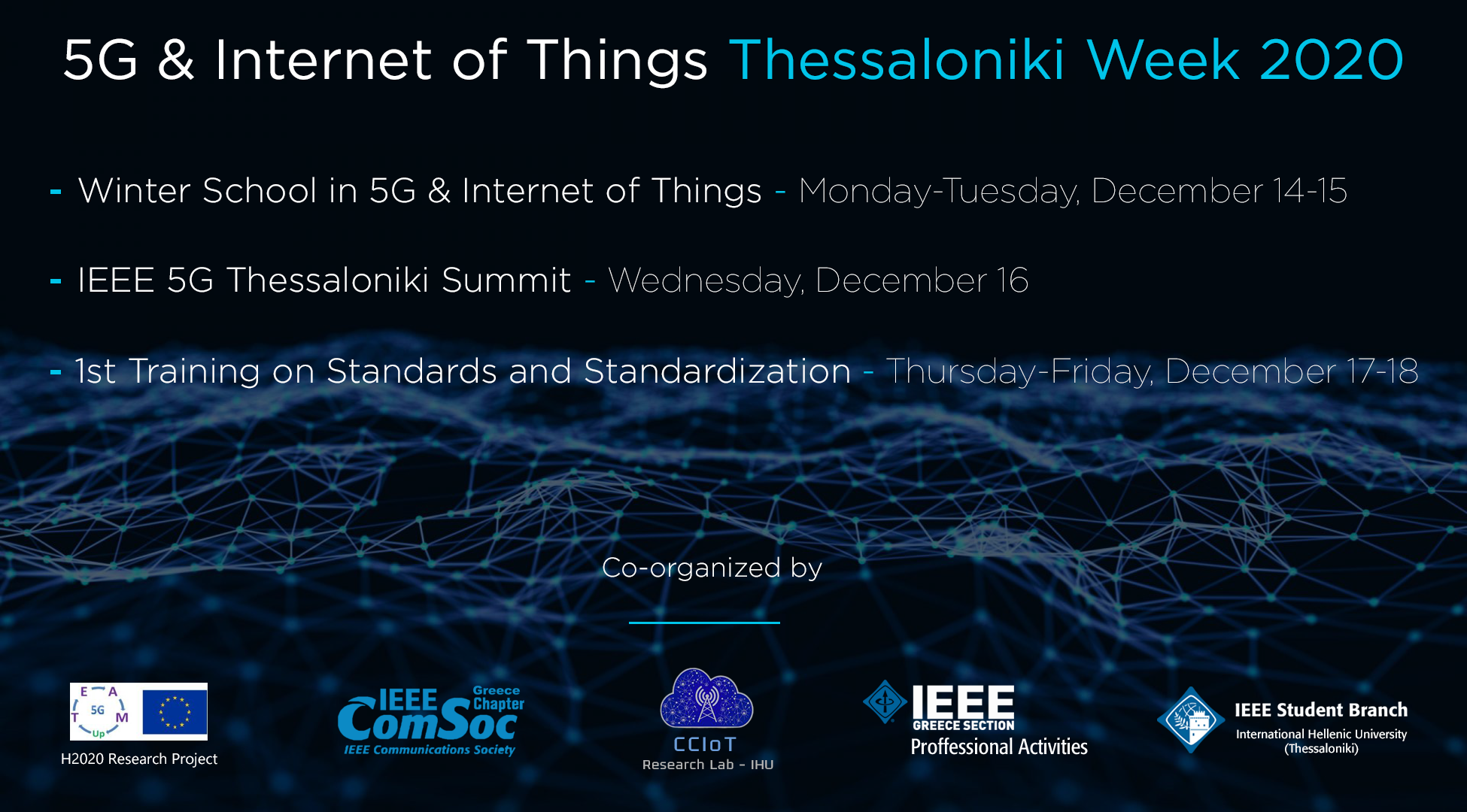 – IEEE 5G Thessaloniki Summit 2020 (Wednesday, December 16)