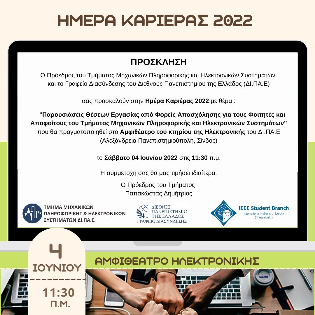 (Ελληνικά) Ημέρα Καριέρας, Σάββατο 04/06/2022, 11:30-14:00