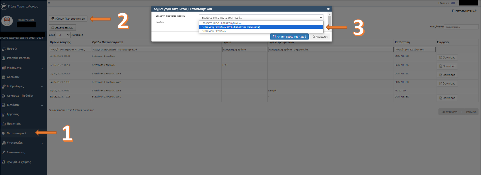 (Ελληνικά) Νέα υπηρεσία: Έκδοση βεβαιώσεων σπουδών μέσω Uniportal