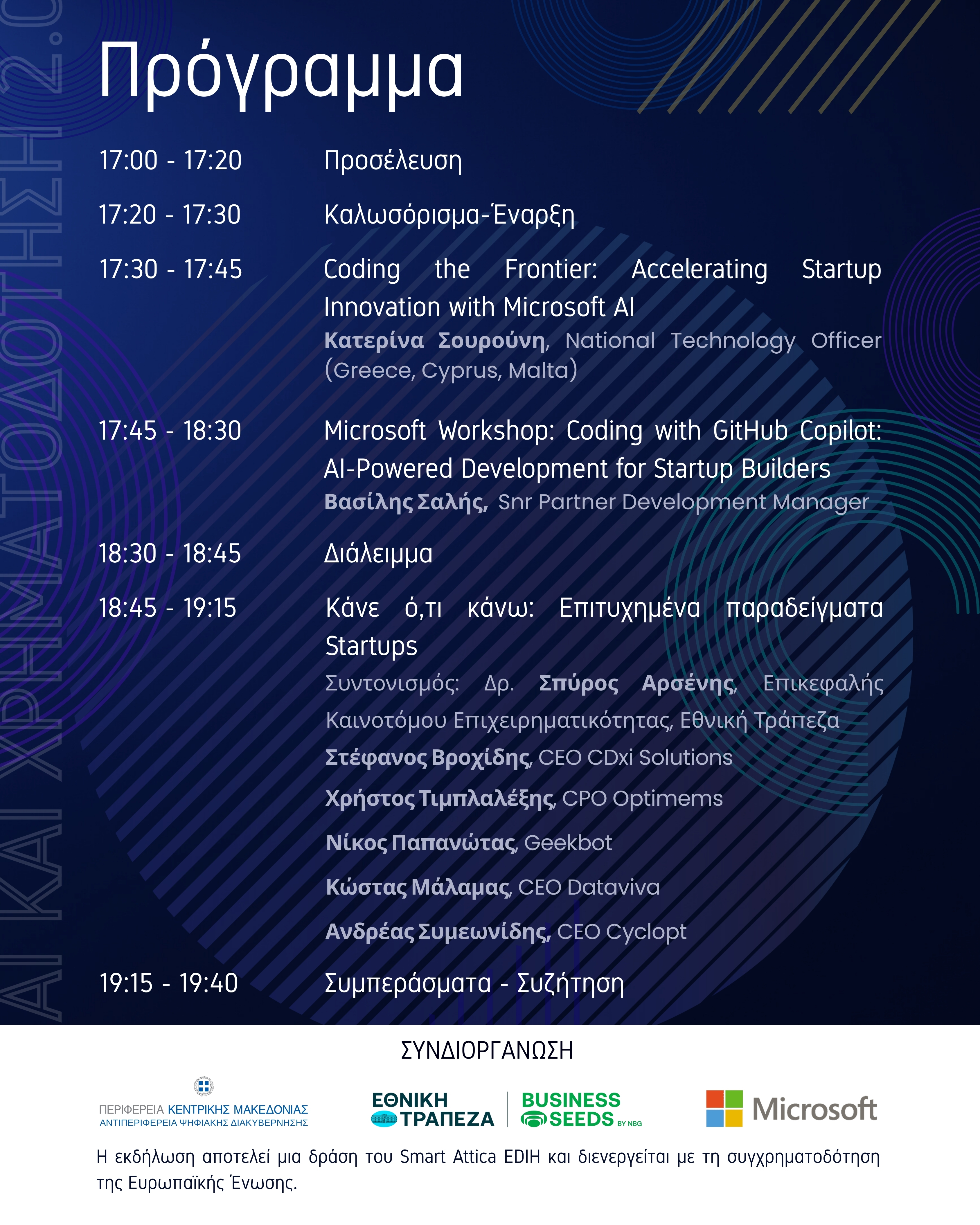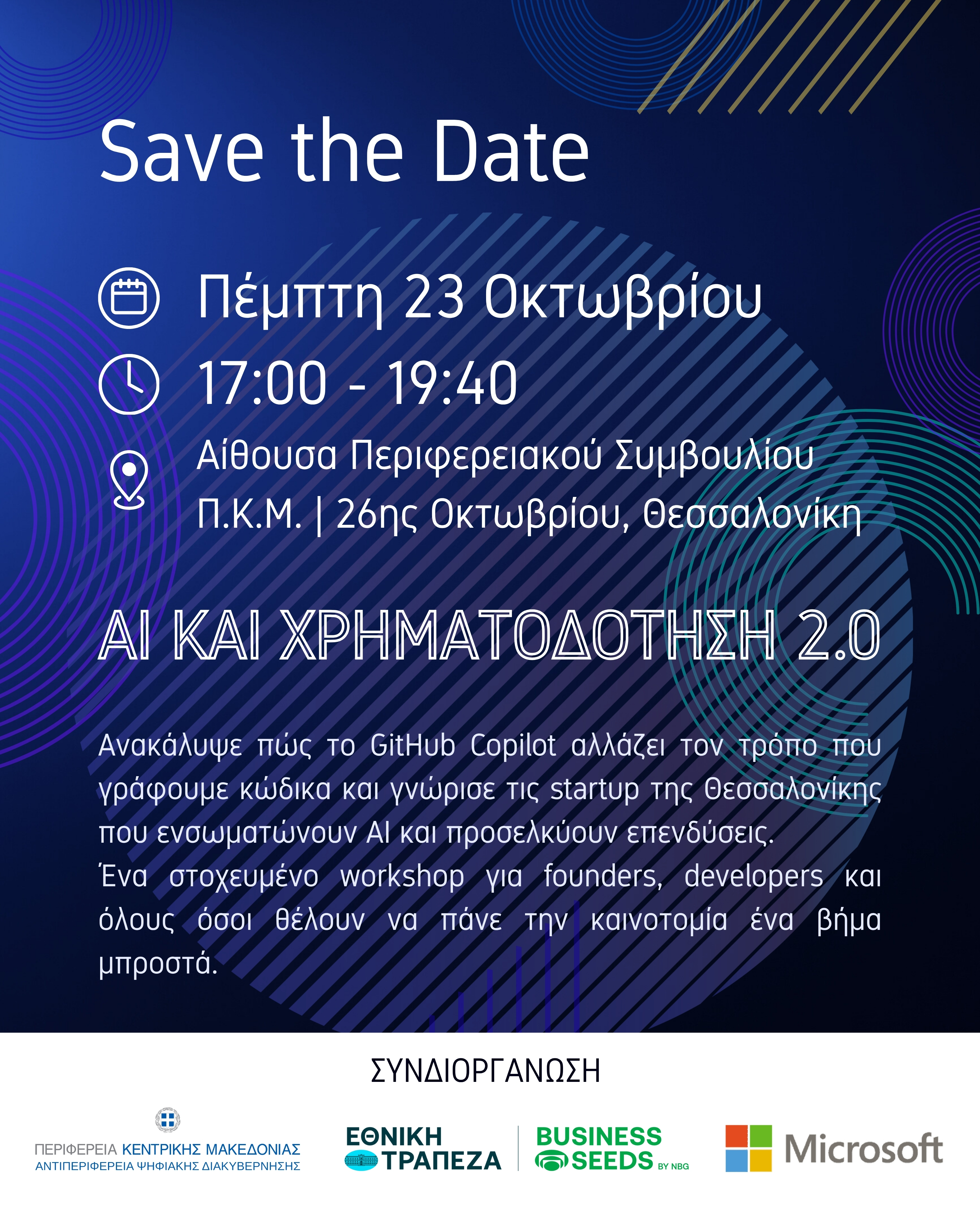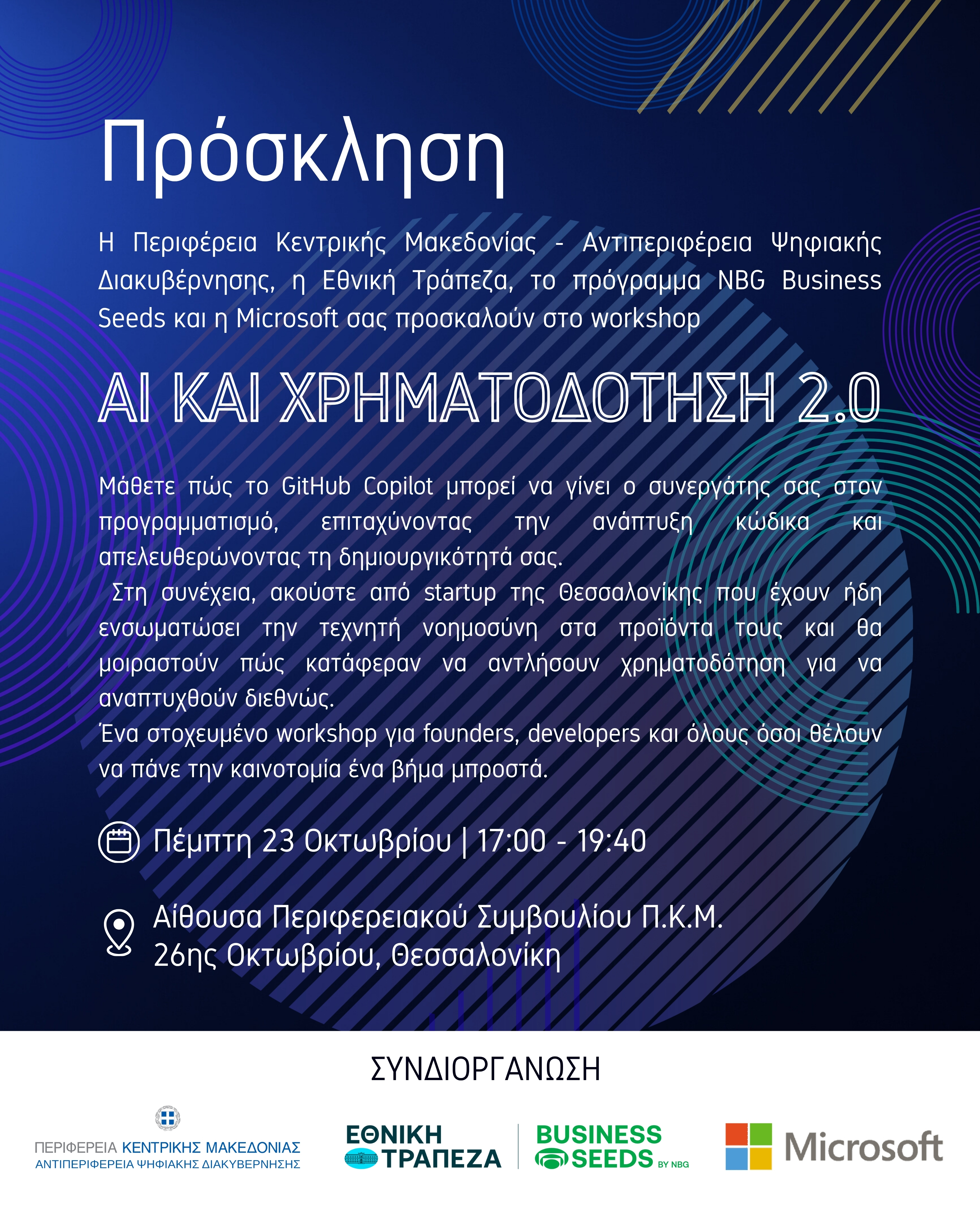 (Ελληνικά) workshop,«AI και Χρηματοδότηση 2.0» | Πέμπτη 23 Οκτωβρίου | 17:00 – 19:40