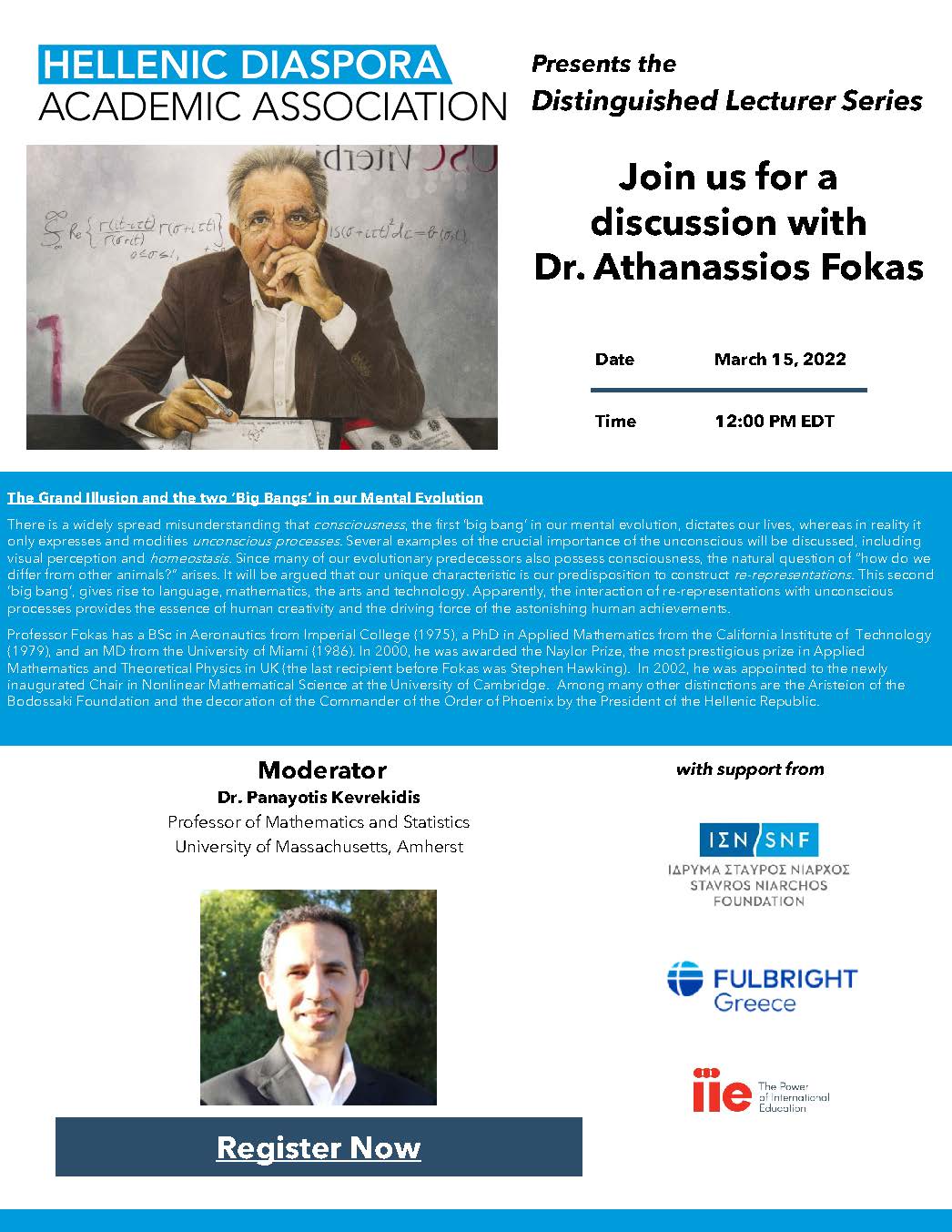 After the success of our inaugural #DistinguishedLecturerSeries session (that featured Dr. George Paxinos), we are delighted to share the details of the second session organized by the #HellenicDiasporaAcademicAssociation (#HDAA*): we will be hosting world renowned mathematician and Professor with the University of Cambridge, Dr. Athanassios Fokas!